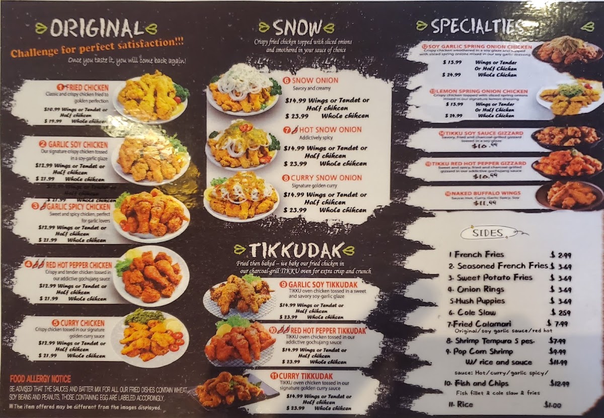 Signature golden curry plus Savory and creamy snow white sauce. Crispy fried chicken topped with sliced onions.