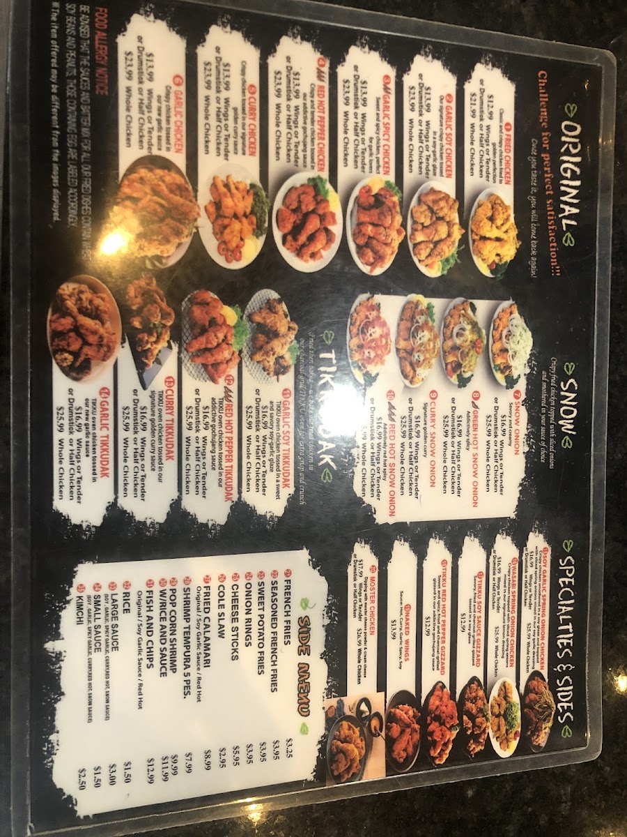 Addictively spicy green chili sauce plus Savory and creamy snow white sauce. Crispy fried chicken topped with sliced onions.